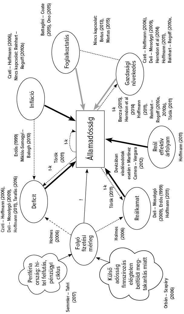 98 Mivel empirikus vizsgálatomban nemcsak a gazdasági növekedés, hanem további tényezők hatását is szeretnénk vizsgálni, ezért nem tudom tovább tárgyalni a témába kerekedett vitát. További elemzések olvashatók Égert (2015), Panizza és Presbitero (2013), Smith (2013) munkáiban.